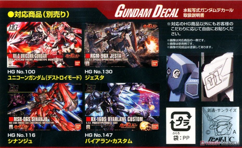 [Water Decal][Bandai] Mobile Suit Gundam Unicorn Multiuse (HGUC) #107