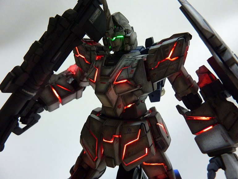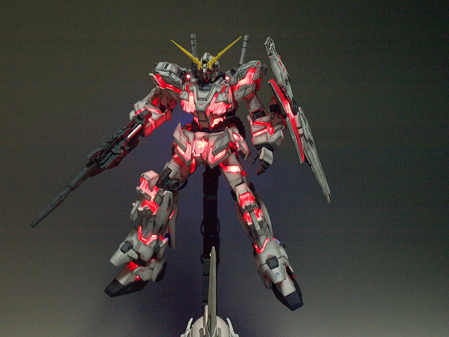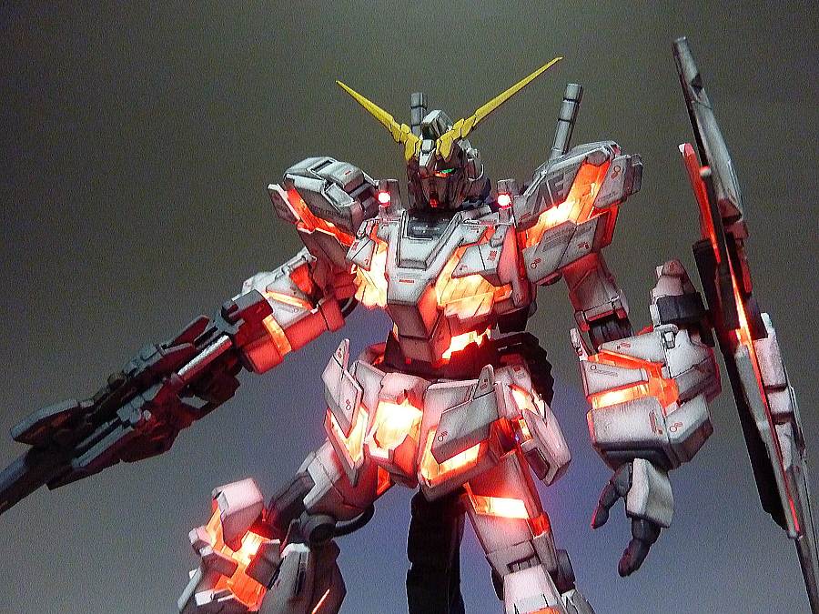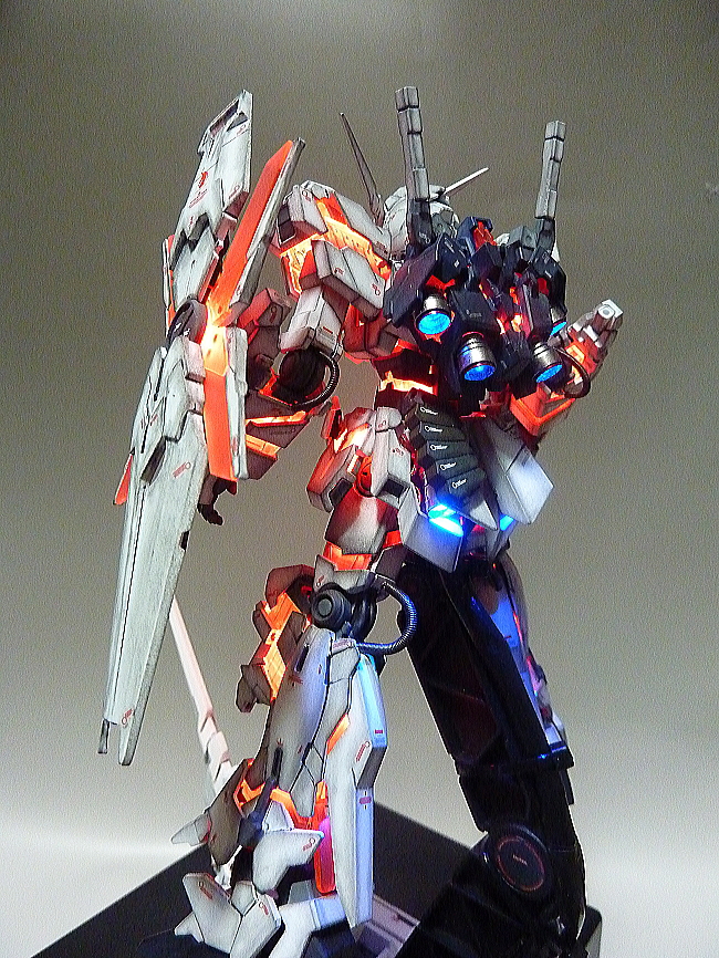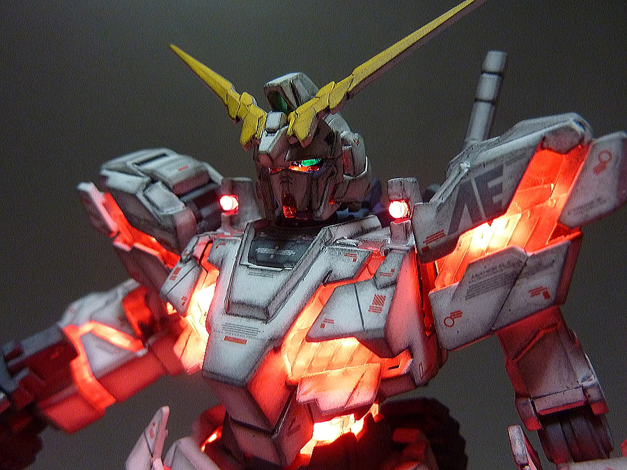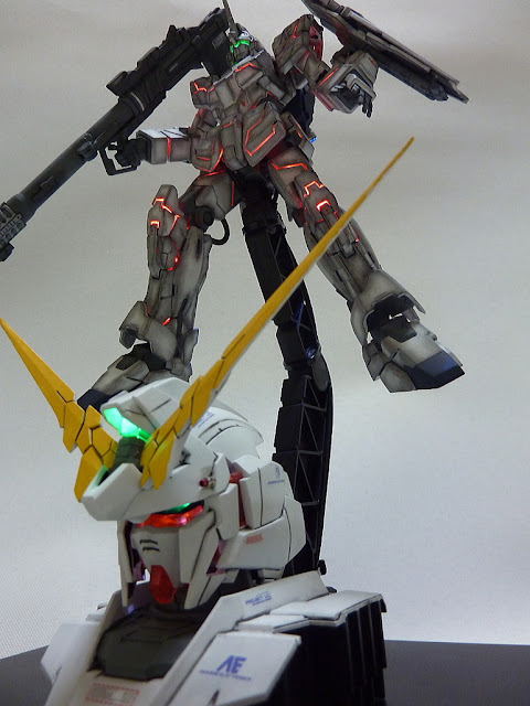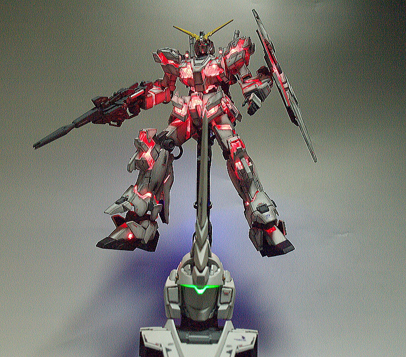 HGUC 1/144 Unicorn Gundam w/ 1/48 Unicorn Gundam Head Display Stand – Customized Build w/ LEDs