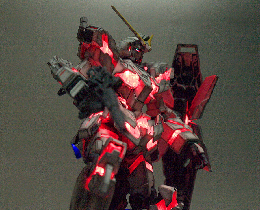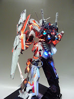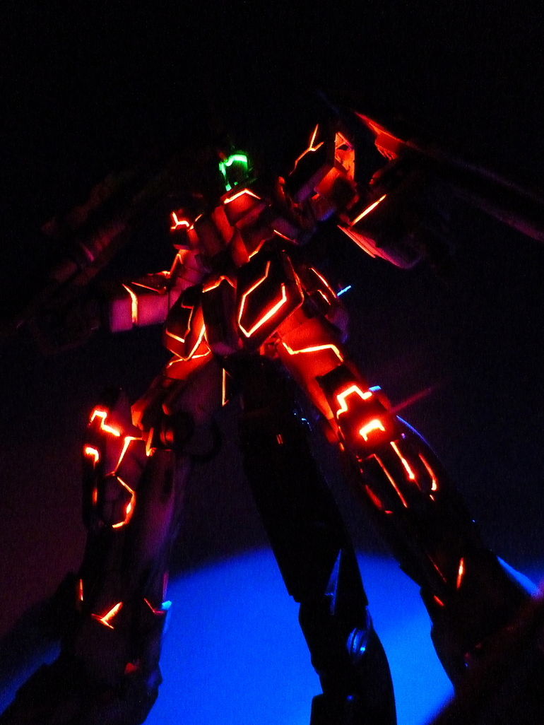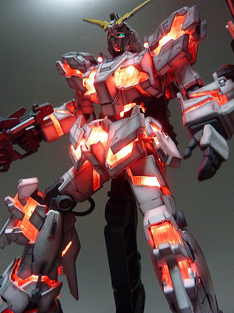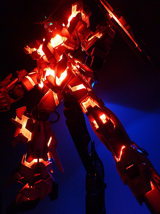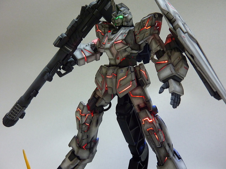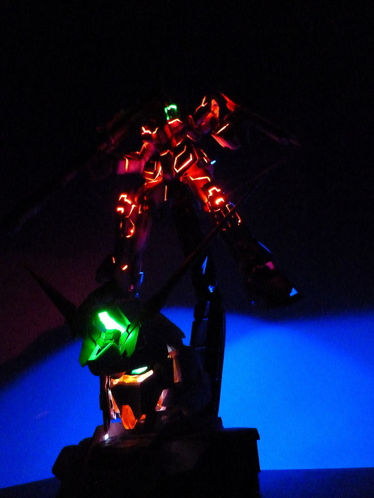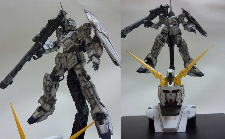 HGUC 1/144 Unicorn Gundam w/ 1/48 Unicorn Gundam Head Display Stand – Customized Build w/ LEDs
