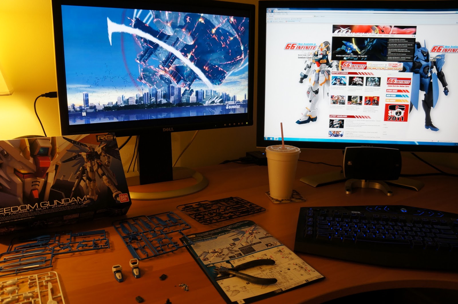 Took a break tonight watching Gundam UC Episode 4 via rental from the Playstation store, and started building the RG 1/144 Freedom Gundam sample that I recieved last Friday.