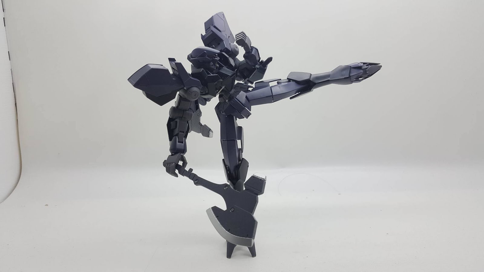 Well he is doing not bad, arms articulation is great, there is even 2 different joints on the lower arm which can make the wrist go upwards and downwards. The Waist can turn 360 degree no problem as there is nothing hindering the waist. The legs.. can do a slight split not much as most of the IBO kits, Sadly he can’t do the gundam squat..